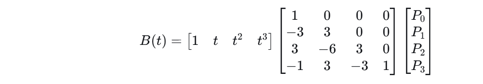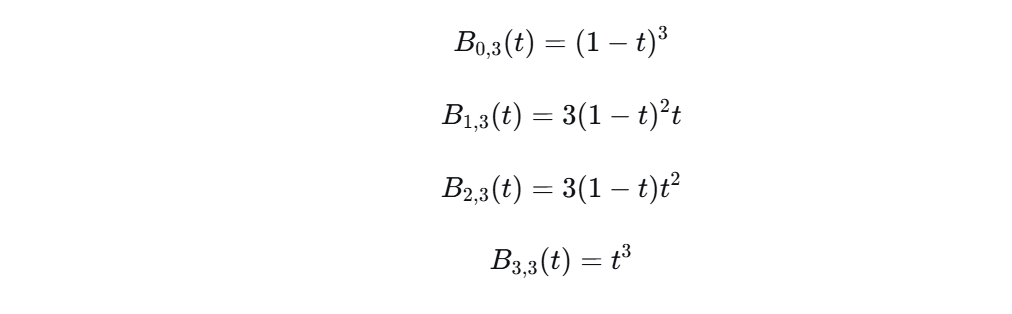 return (1-t)**3 * P0 + 3*(1-t)**2*t * P1 + 3*(1-t)*t**2 * P2 + t**3 * P3
