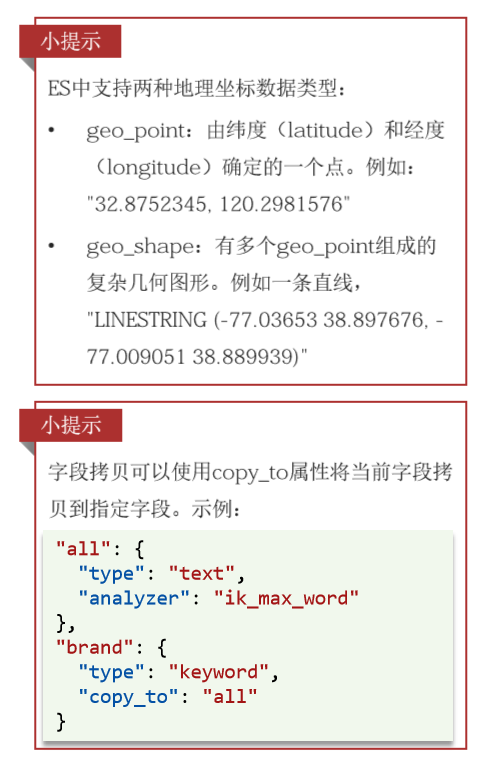 "all": { # 希望根据多个字段搜索,而且效率高,就把多个字段拷贝到指定字段(如 all)