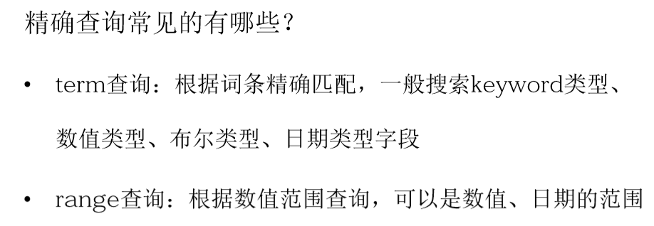 📕 精确查询一般是查找keyword、数值、日期、boolean等类型字段。所以不会对搜索条件分词。常见的有: