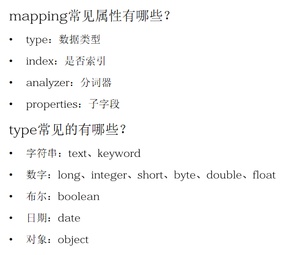 mapping 要考虑的问题:字段名、数据类型、是否参与搜索、是否分词、如果分词,分词器是什么❓