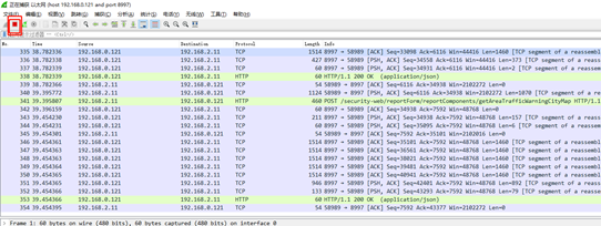 - 停止抓包,点击停止后,可以将捕获的数据包保存。