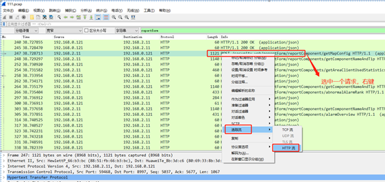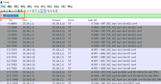 - 根据ip地址进行筛选,语法如下ip.addr==192.168.0.121。