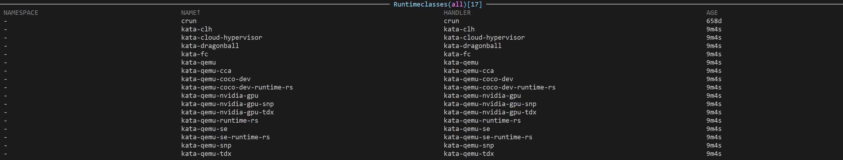 向 Kubernetes API Server 注册RuntimeClass,结果如下