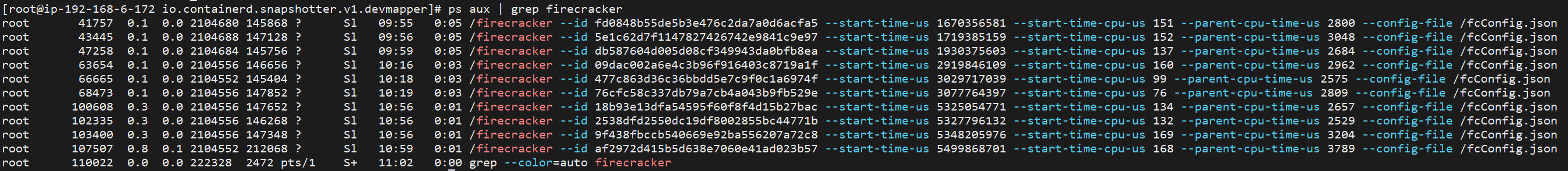 查看Firecracker进程如下