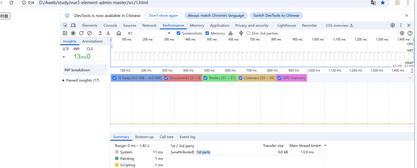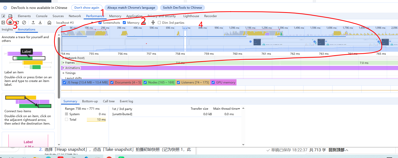 现在我们再通过performance和memory来看看还不会存在内存泄漏的问题