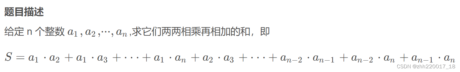 ans+=(ll)a[i]*sum_after_i;//刚好用减去的第一个数用来算乘积