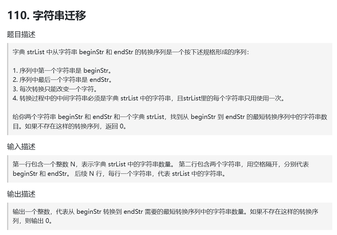 # 否则,遍历 strlist,找到未访问且与 str相差一个字符的字符串,标记为已访问并入队(步数加 1)。