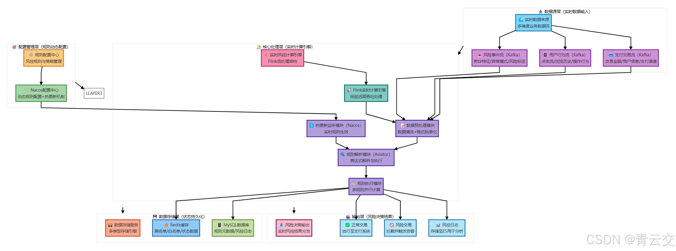 | 稳(高可用) | 系统可用性≥99.99%,规则更新不影响现有交易 | 避免业务中断,保障交易连续性 | 某支付平台因规则热更新 Bug,导致 1 小时内交易无法风控,损失 500 万 |