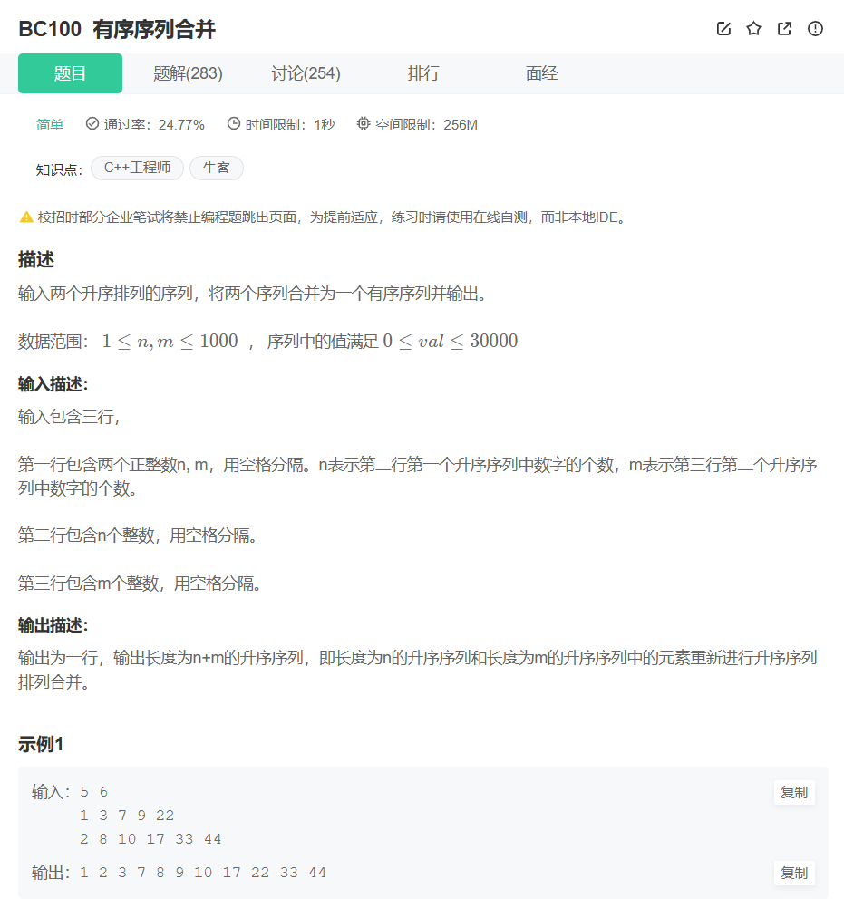 // 2. 定义并读取两个有序数组