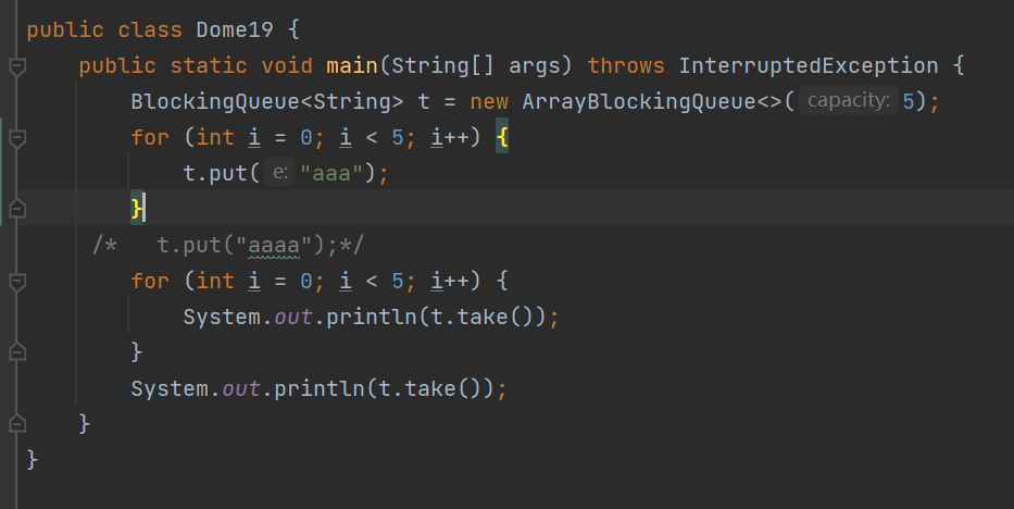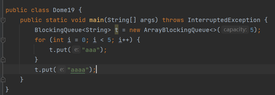 当我们使用put方法时就是往堵塞队列中加入元素了,当队列满了在添加时就会堵塞等待。