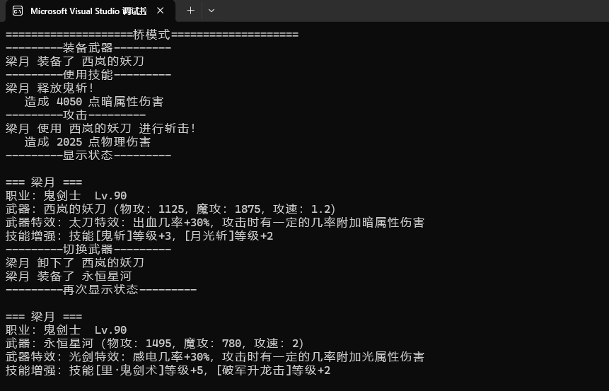 std::cout<<"=== 不使用桥模式的DNF(职业 + 武器)==="<<std::endl;
