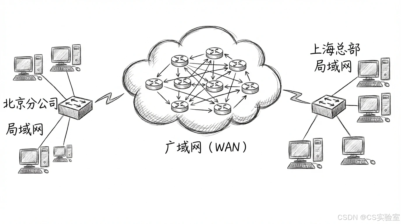 广域网(Wide Area Network,简称 WAN)是指覆盖地理范围通常为几十公里到几千公里,甚至连接多个国家和大洲的计算机网络。与局域网不同,广域网的主要任务是提供长距离的通信服务,实现远距离的数据传输。