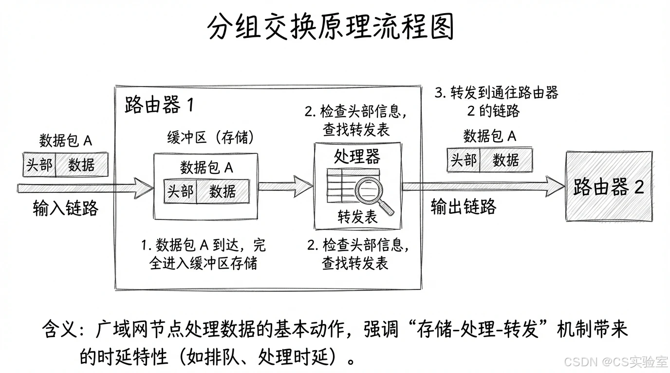 设广域网中的节点数为 NNN,链路数为 EEE。网络需要通过路由算法(如 OSPF, BGP)计算出两点间的最优路径。与局域网的广播机制不同,广域网主要采用 存储转发(Store and Forward) 机制。