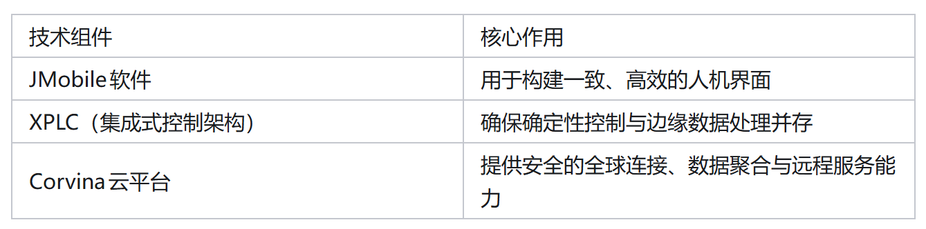 借助宏集Corvina云平台,可以安全地连接大量机器,实现全球范围远程可视化和维护。与此同时,JMobile 与XPLC集成式控制架构保持现场界面与控制执行的一致性,使可视化与运行逻辑协同演进。
