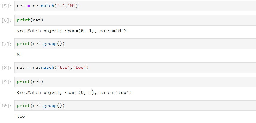 re.match能够匹配出以xxx开头的字符串,如果起始位置没有匹配成功,就会返回None。