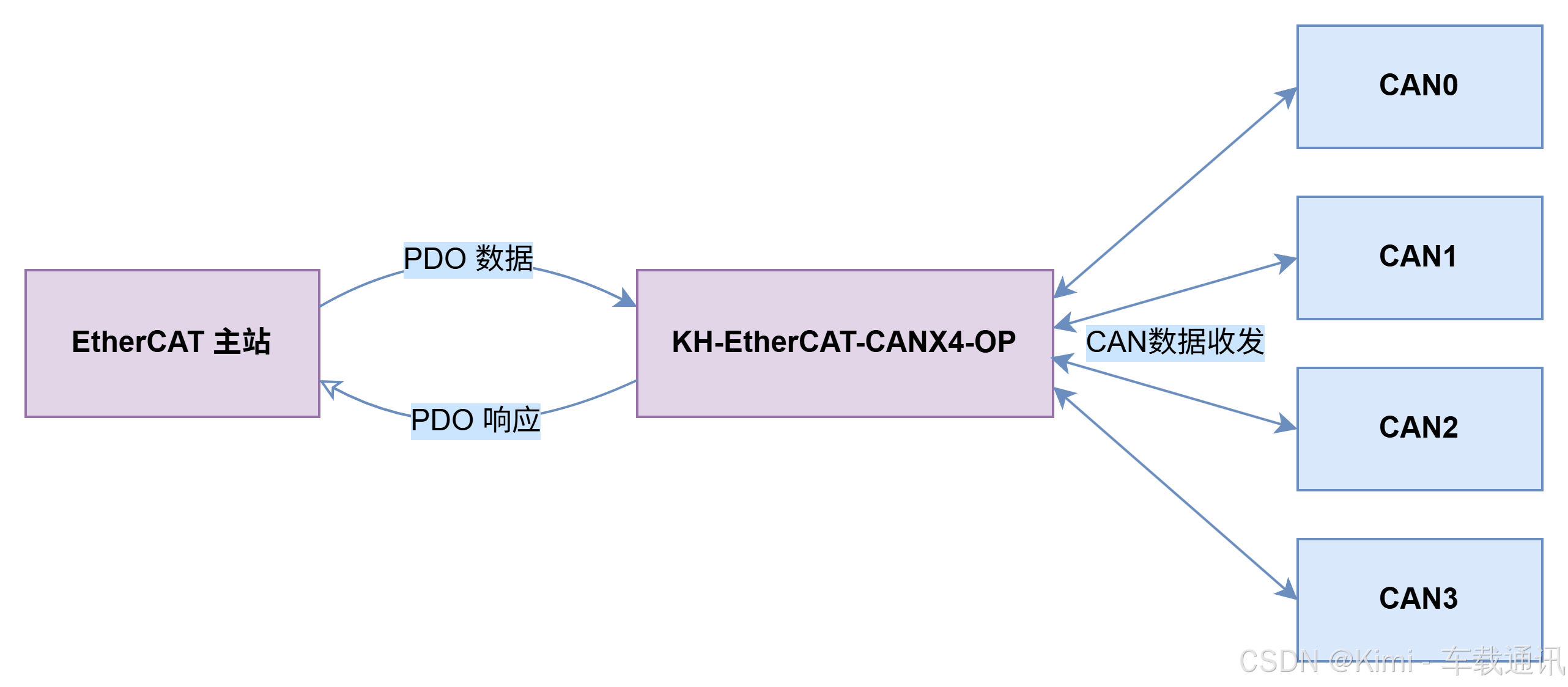 | Output(输出) | ECAT 从站 → ECAT 主站(发送 CAN 数据,或向上层反馈状态) |