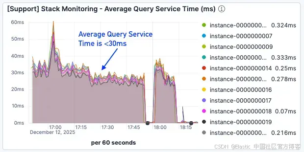 图 2。平均查询服务时间开始飙升,并上升并维持在 >60ms。