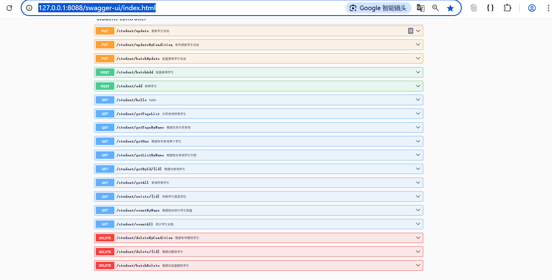 @Operation(summary = "批量新增学生", description = "批量添加学生信息")
