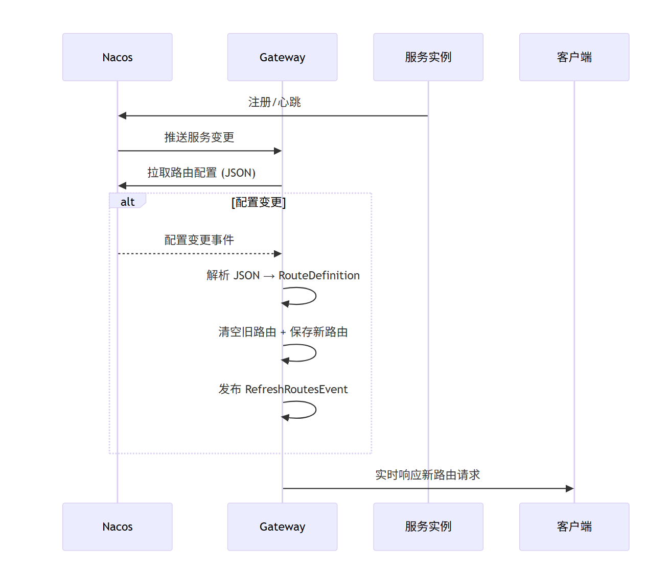 动态路由:网关从 Nacos/配置中心实时拉取路由规则,服务新增/下线时自动更新路由,无需修改 yml 或重启网关。