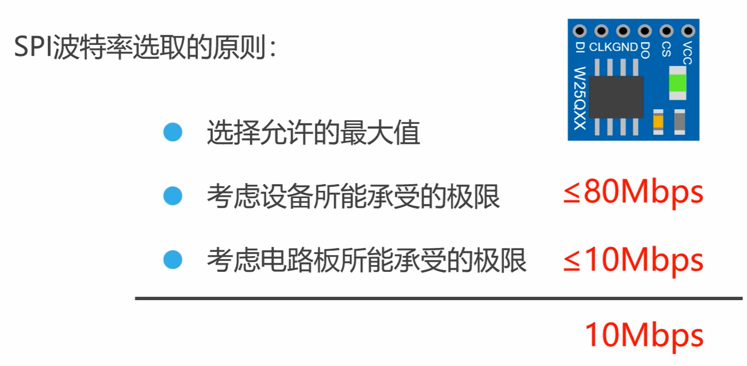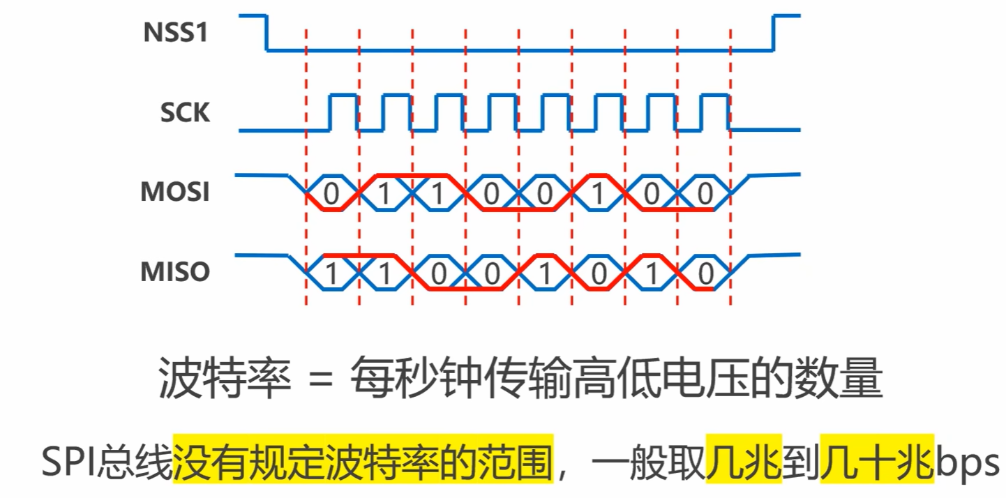 定义 :SPI 的数据传输速率 (单位:bps),由主设备的SCLK 时钟频率决定。
