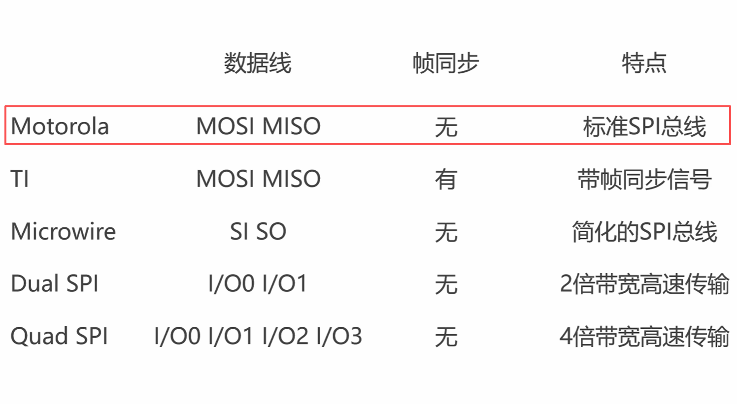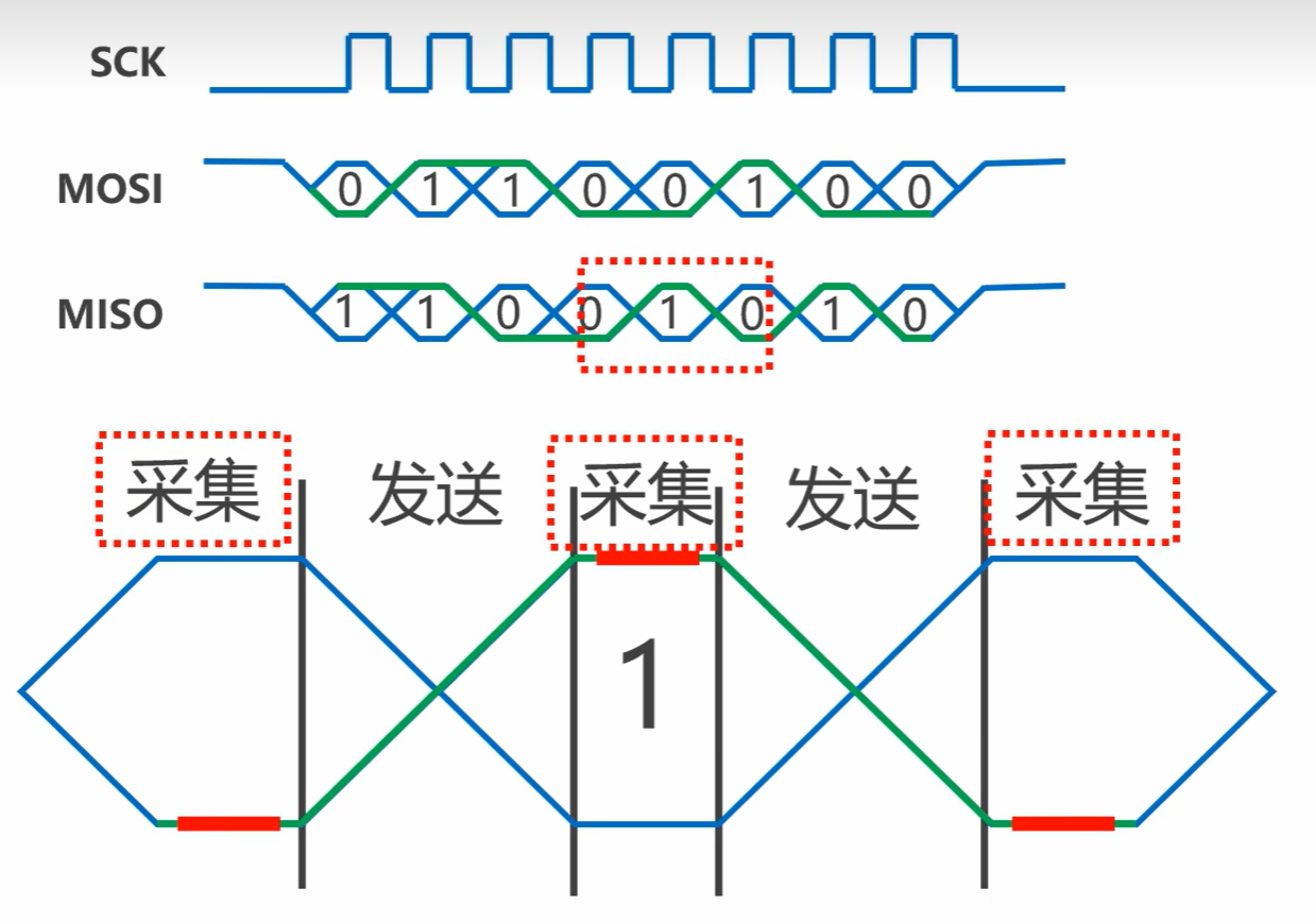 - 同步传输 :由主设备提供SCLK 时钟信号,数据收发与时钟沿同步。