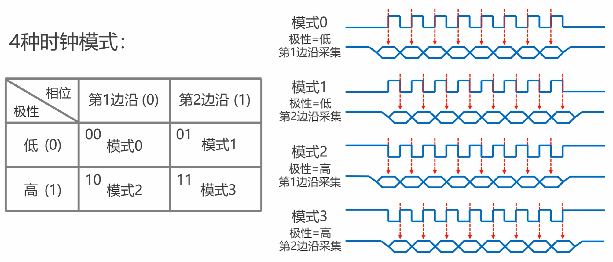关键 :与 CPOL 组合形成4 种 SPI 工作模式 (Mode 0~3),主从必须配置为同一模式。