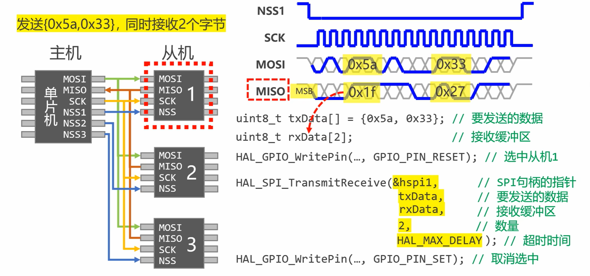 - 全双工通信:主、从设备可同时收发数据,传输效率高。