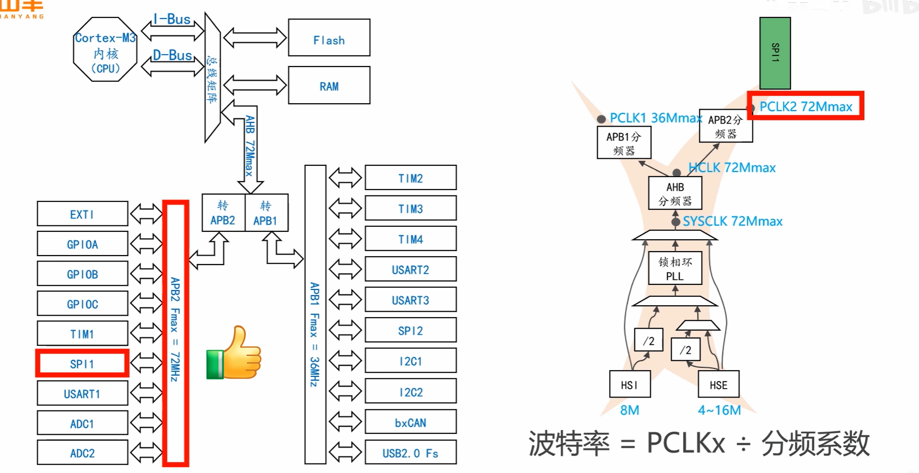 要点:主设备控制时钟,从设备需支持该速率;常见速率几十 MHz,高速 SPI 可达百 MHz 级。