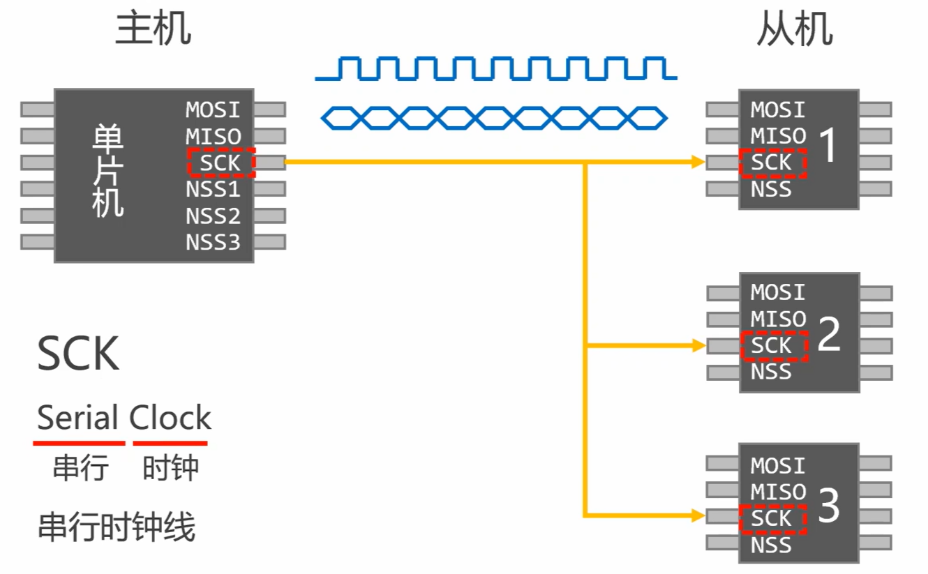 - SCLK:串行时钟(主设备输出)
