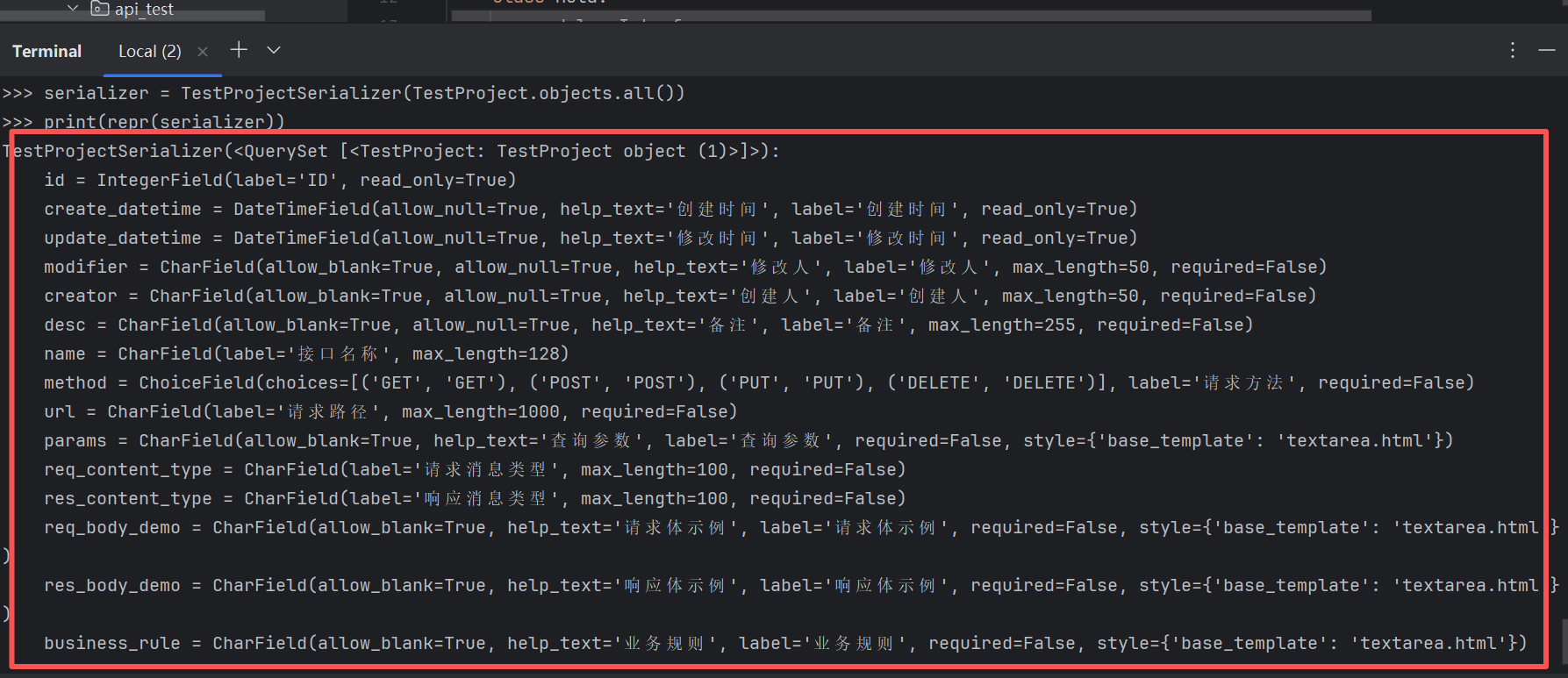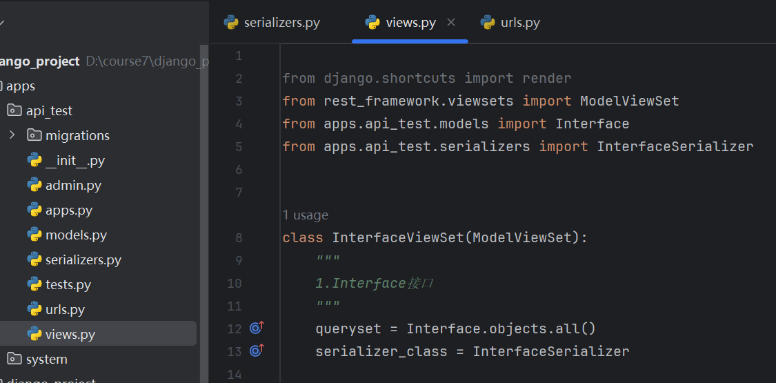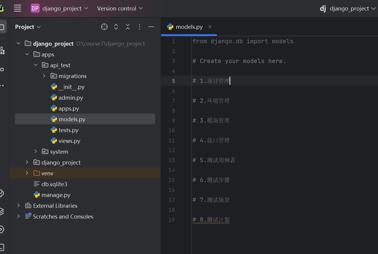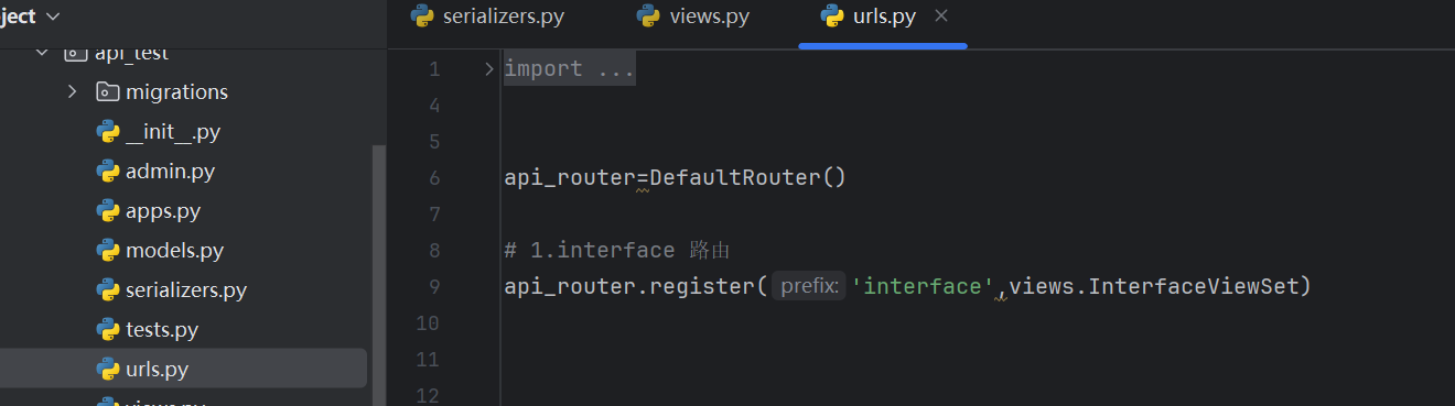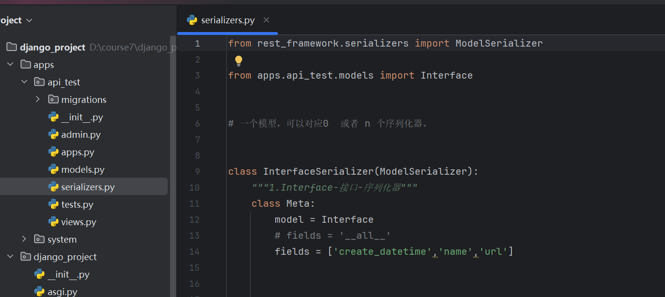 比如说,api_test这个应用,我们就需要在models.py这个文件里面去定义我们的模型即可