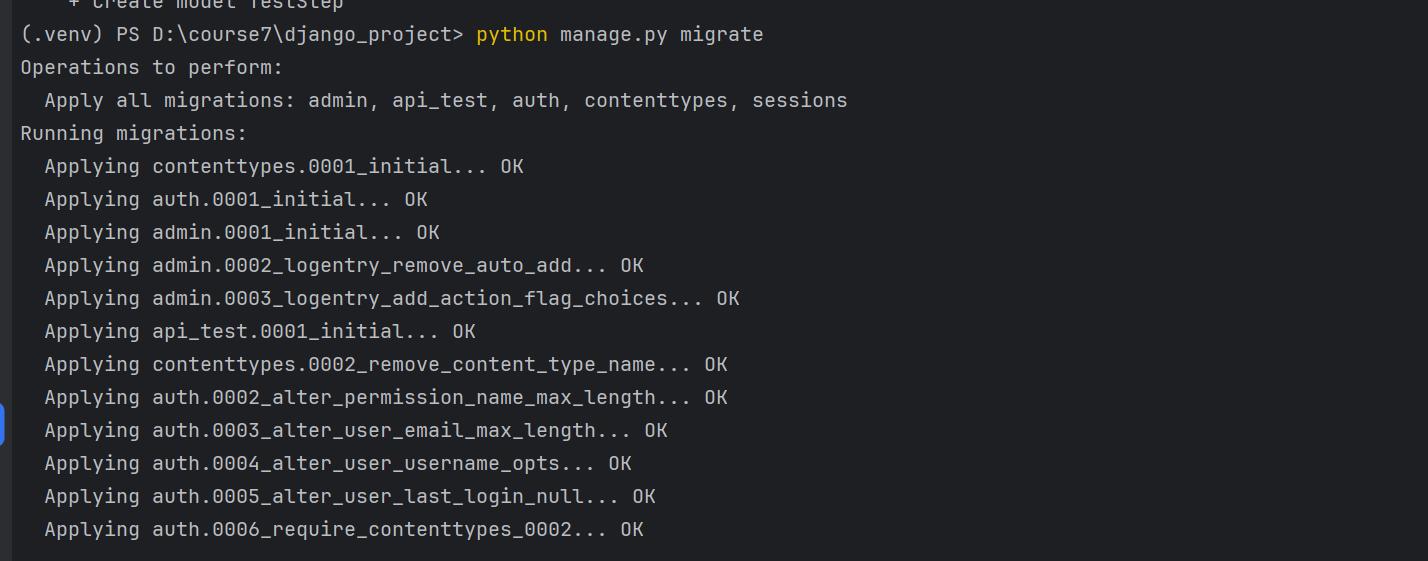python manage.py migrate:将生成的迁移文件,落到数据库表中