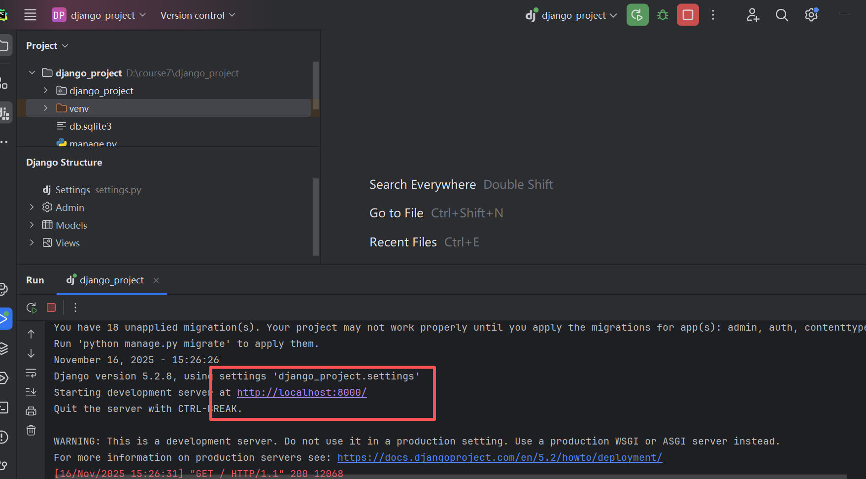 我们使用startproject来创建一个项目django-admin startproject django_project