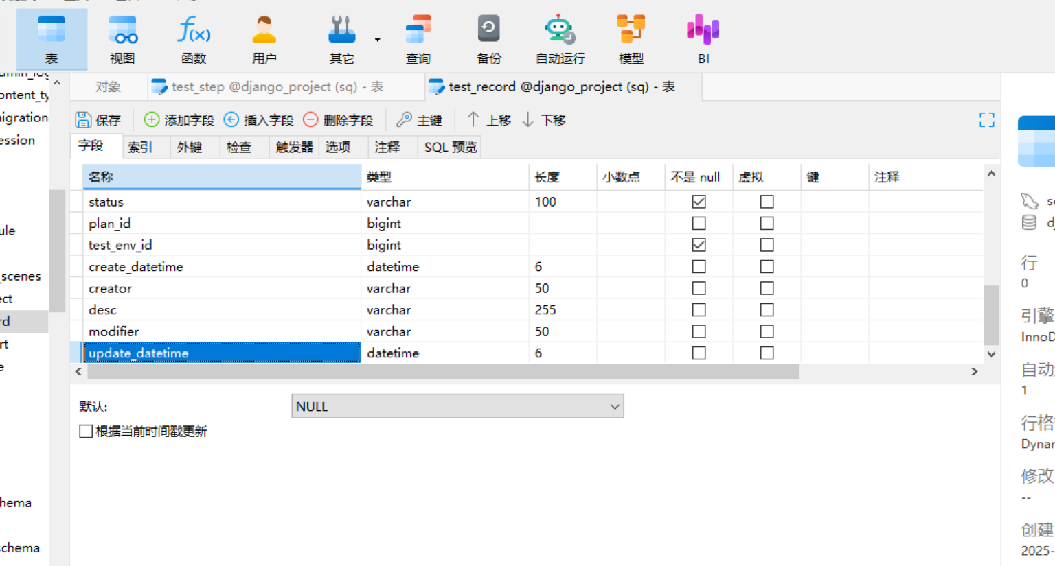 字段类型:数字类型(整型、浮点型)、布尔类型、Json类型、时间(日期-时间)