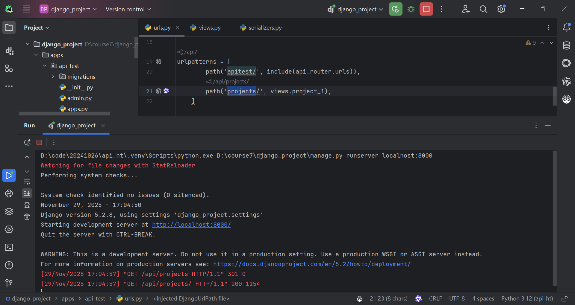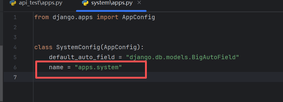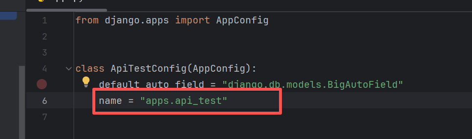 针对第一点,我们的每一个应用下的apps.py文件,里面的name,需要修改为apps.api_test