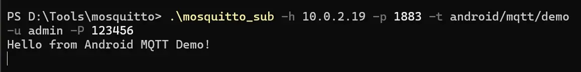.\mosquitto_sub -h 你的电脑IP -p 1883 -t android/mqtt/demo -u admin -P 123456