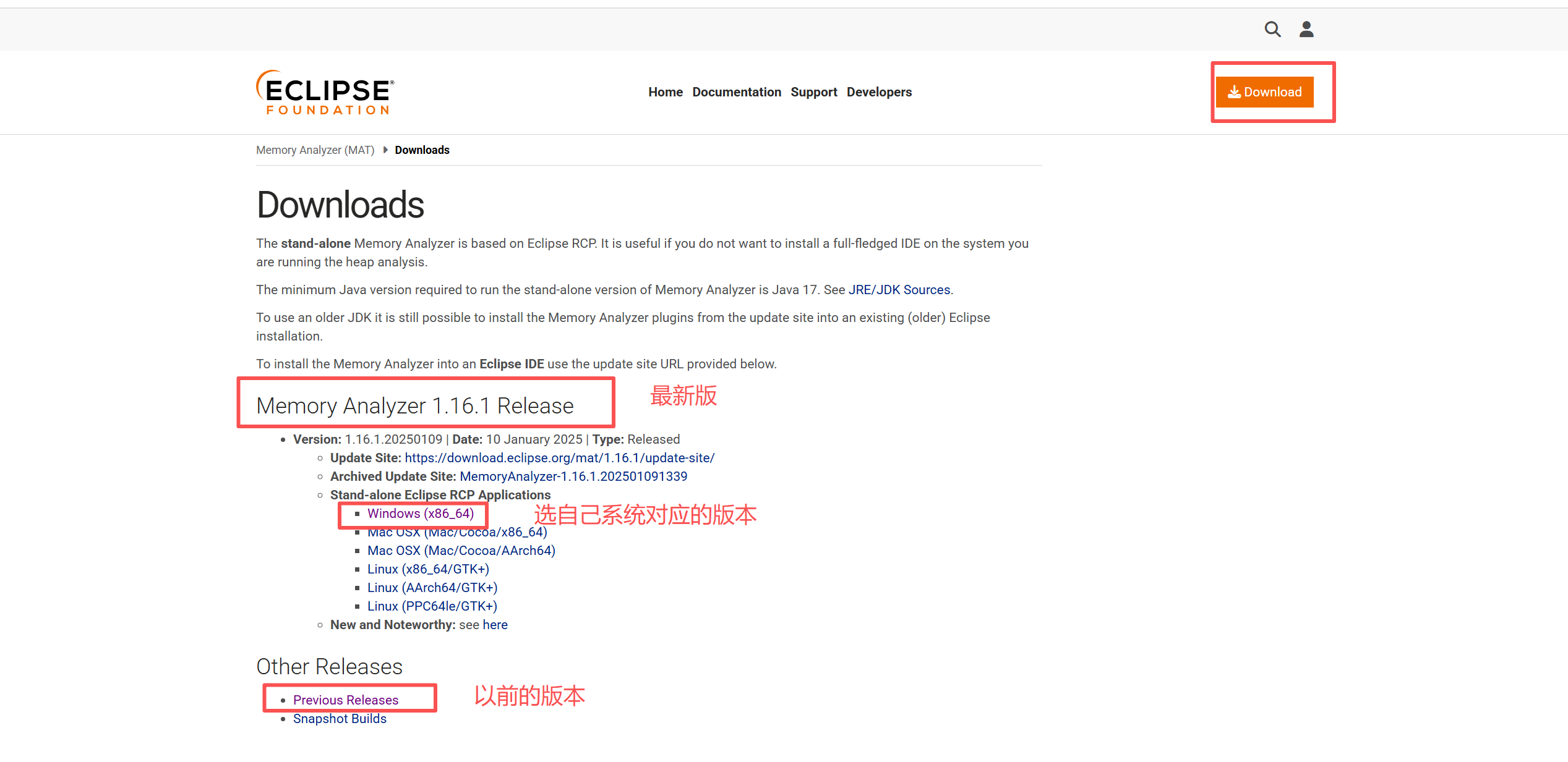 PS:网上包括deepseek都推的这个地址:https://eclipse.org/mat/downloads.php