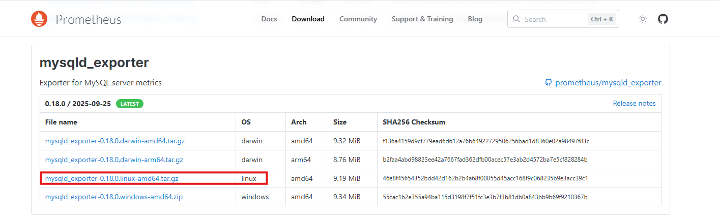 https://github.com/prometheus/mysqld_exporter/releases/download/v0.18.0/mysqld_exporter-0.18.0.linux-amd64.tar.gz