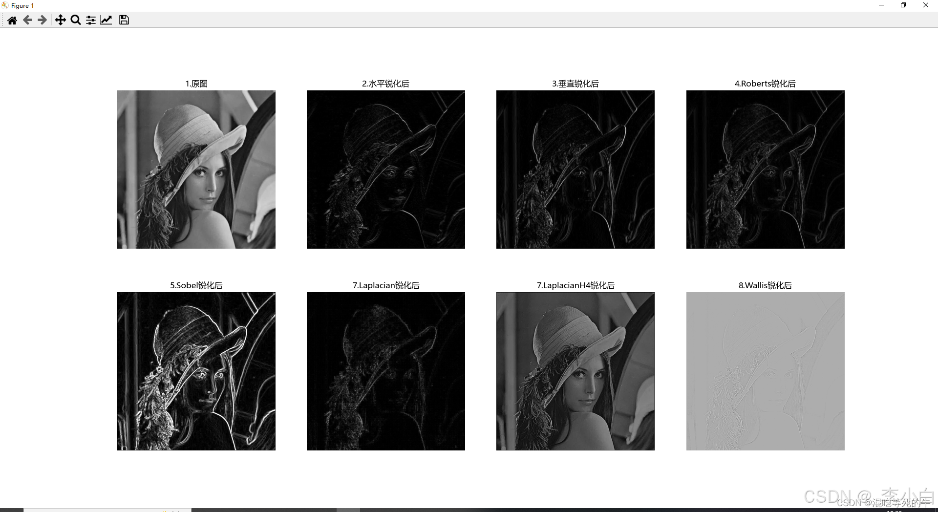 - 计算逻辑:锐化后像素值 = 周围8像素求和 - 中心像素×7;