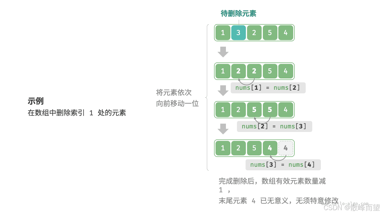由于数组存放在连续内存空间上的相同类型数据的集合,因为数组在内存空间的地址是连续的,所以我们在删除或者增添元素的时候,就难免要移动其他元素的地址。