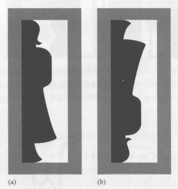 (d)将图形从背景中分割开来的边界看起来属于图形。例如,如图6,当面孔被视为图形时,两个图形之间的边界属于面孔。边界属于其中一个图形的属性被称为边界归属。