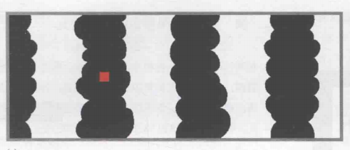 另一个观点是,边界凸面(向外凸出的边界)的区域更有可能被视为图形。Peterson和Salvagio(2008)通过图8所示的刺激证明了这一点。实验要求被试指出红色方块是否位于图形上。结果与该格式塔的观点相一致,即被试更愿意判断黑色区域为图形。