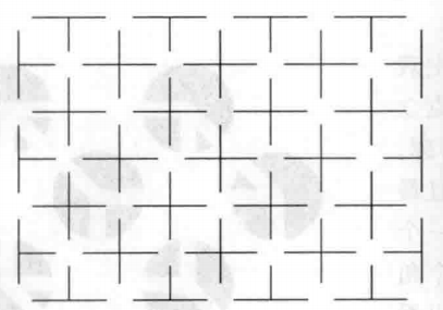 实际上,在使用经验匹配时,我们通常倾向于选择最简单的图形进行匹配,这遵循了图形简单的普遍原则。连续性体现在使用直线或平滑曲线(相较于"崎岖"的线条或分割的线段,这些线条更为简洁)。闭合性、完形律和表面重叠使得图案在整体上更易于理解。似动现象也符合图形简单的普遍原则,例如图2所示的两点之间的直线运动(直线运动相较于其他运动形式更为简单)。那么,何谓"简单"呢?熟悉感是一种"简单",但除此之外还有其他因素。圆被认为是最简单的图形,正如下图11所示,方格交点的空白处形成了圆的主观轮廓(完形律认为简单图案更容易被感知)。为何圆被视为最简单的图像?一种解释是它的信息量最少,仅需一个半径参数即可描述。而对于正方形,除了边长,还需考虑其旋转角度,因此正方形需要两个参数来描述,例如下图12三个边长相等的正方形,因旋转角度不同而呈现不同的视觉刺激。相反,无论圆如何旋转,其给人的视觉刺激始终如一。同理,长方形则需要三个参数来描述。对称图案之所以信息量少,是因为人们只需记住其一边的特征即可。