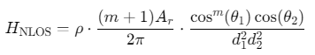 H_nlos = rho * (m+1)*A_r/(2*pi) * cos(theta1)^m * cos(theta2) / (d1^2 * d2^2);