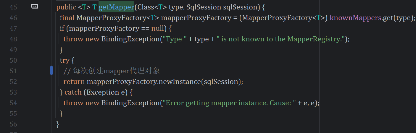 mybatis中MapperRegistry#getMapper方法,每次都会返回新的代理对象。