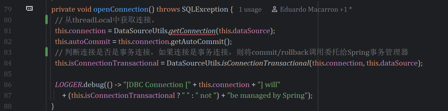 public class SpringManagedTransaction implements Transaction {