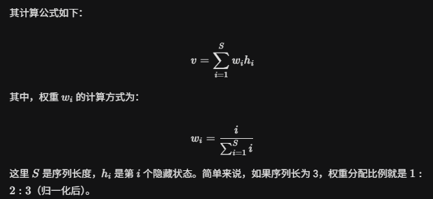 加权方案: 赋予靠后的 token 更高的权重,通过线性加权的方式进行聚合。