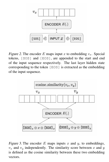 这篇论文介绍了使用 EOS(End of Sentence) 标己对应的最后一层隐藏层向量 作为整个文档的嵌入表示。这种方法的基本假设是,由于GPT是一个生成式模型,因此在生成EOS之前,模型需要对整个文档的上下文信息有一个很好的理解。因此,EOS对应的隐藏向量包含了整个文档的语义信息。