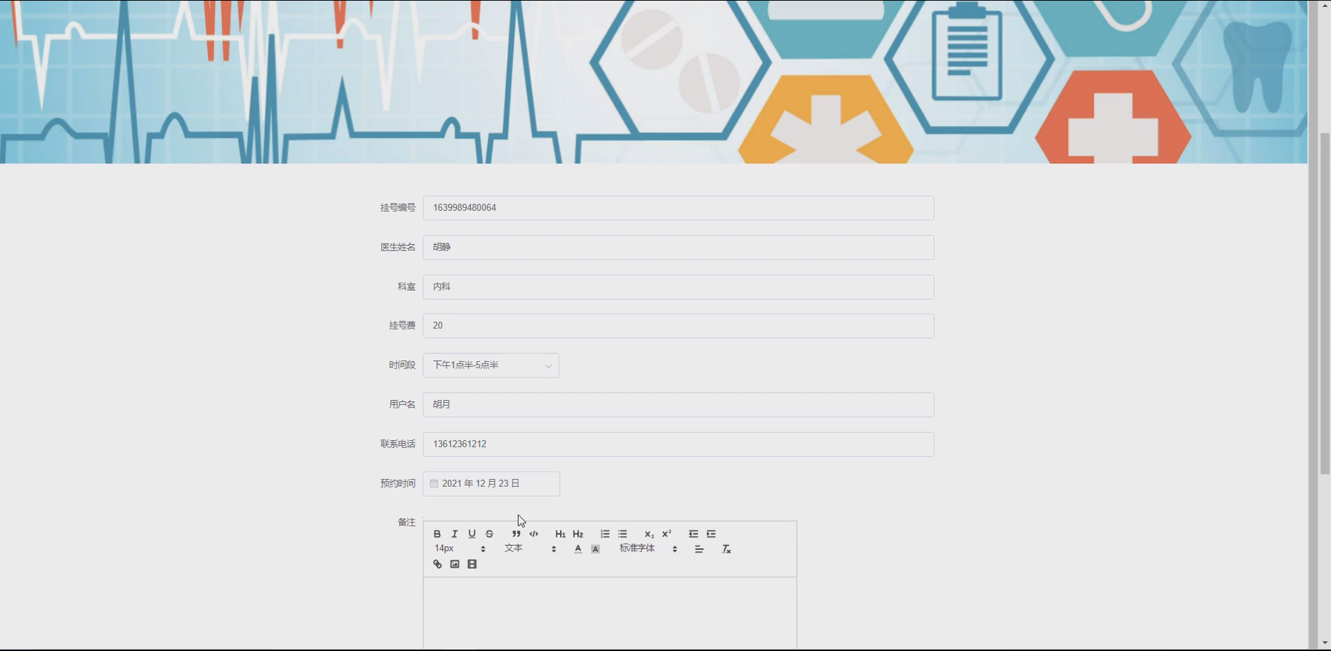 预约信息模块:实现用户预约医生、查看预约状态(待确认、已确认、已取消),医生确认或取消预约、查看预约详情等功能,规范预约流程;