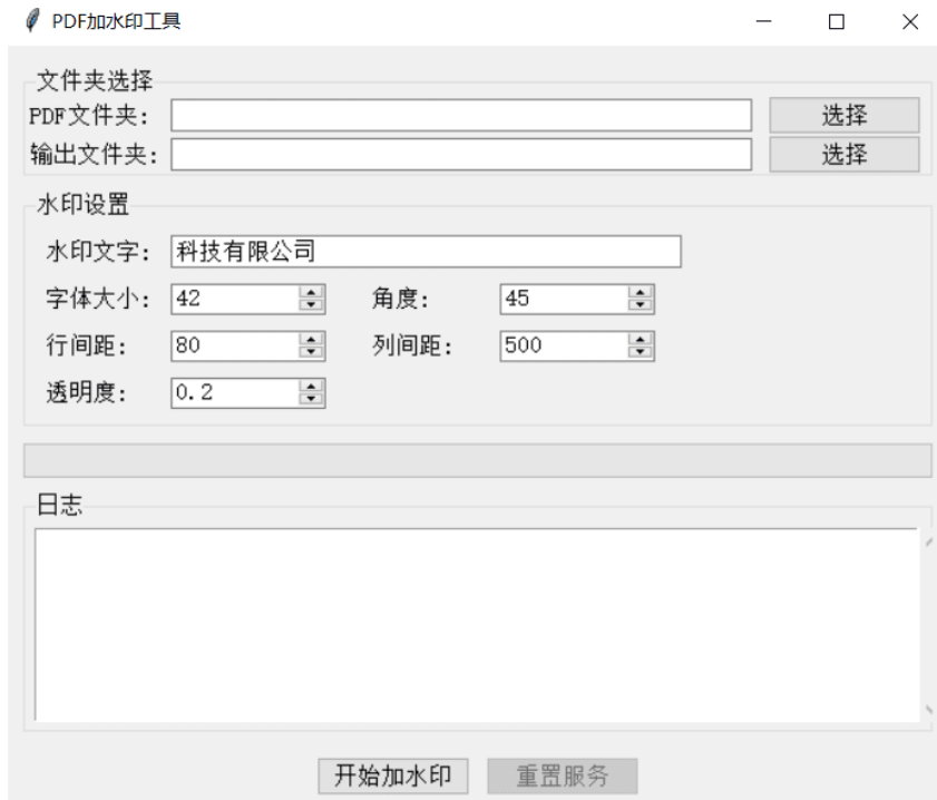 一个方便易用的批量PDF文件加水印工具,使用Python和Tkinter图形界面,能够为整个文件夹中的PDF文件批量添加半透明倾斜水印。