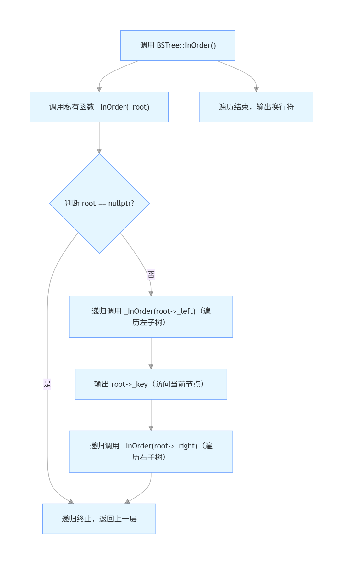_root私有化:防止外部直接修改根节点,只能通过类的成员函数操作- void _InOrder(Node* root)私有,防止外部传入错误根节点